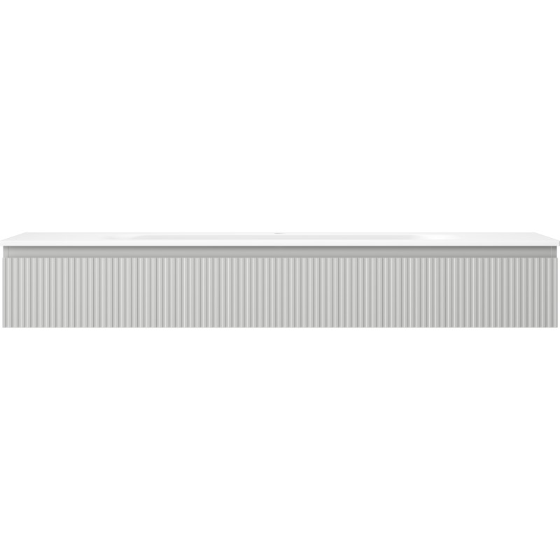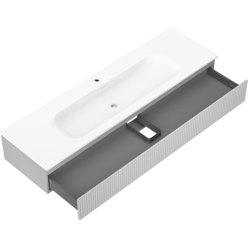 Špecifikácia produktu: Rozmery skrinky: Šírka: 160 cm Hĺbka: 46 cm Výška: 23,5 cm Farba korpusu: Matne šedá Materiál korpusu: Lakovaná doska Farba čela: Matne šedá Materiál čela: Lakovaná MDF doska Štruktúra čela: Drážkovaná Počet zásuviek: odolný voči UV žiareniu Rozmery umývadla: Šírka: 161 cm Hĺbka: 46,5 cm Výška: 16,5 cm Farba umývadla: Matne biela Materiál umývadla: Konglomerát Otvor pre prepad: Áno Otvor pre batériu: Áno Zmontovaný výrobok