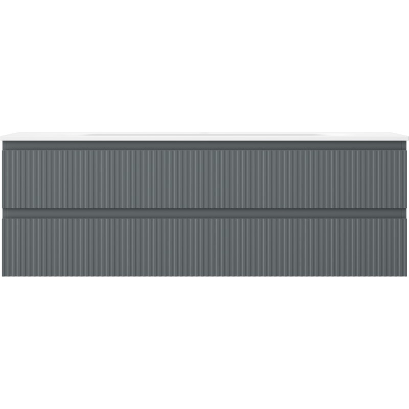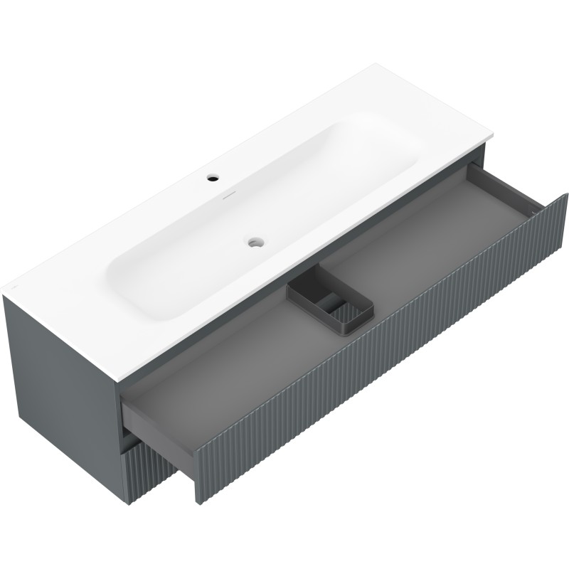 Špecifikácia produktu: Rozmery skrinky: Šírka: 140 cm Hĺbka: 46 cm Výška: 47 cm Farba korpusu: Matný grafit Materiál korpusu: Lakovaná doska Farba čela: Matný grafit Materiál čela: Lakovaná MDF doska Štruktúra čela: Drážkovaná Počet zásuviek: Povrch odolný voči UV žiareniu Rozmery umývadla: Šírka: 141 cm Hĺbka: 46,5 cm Výška: 16,5 cm Farba umývadla: Matná biela Materiál umývadla: Konglomerát Otvor na prepad: Áno Otvor na batériu: Áno Zmontovaný výrobok