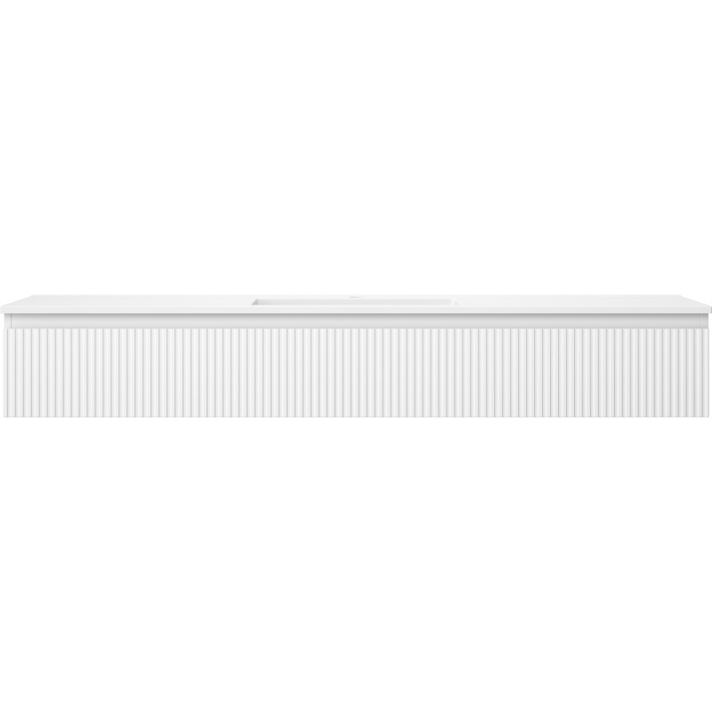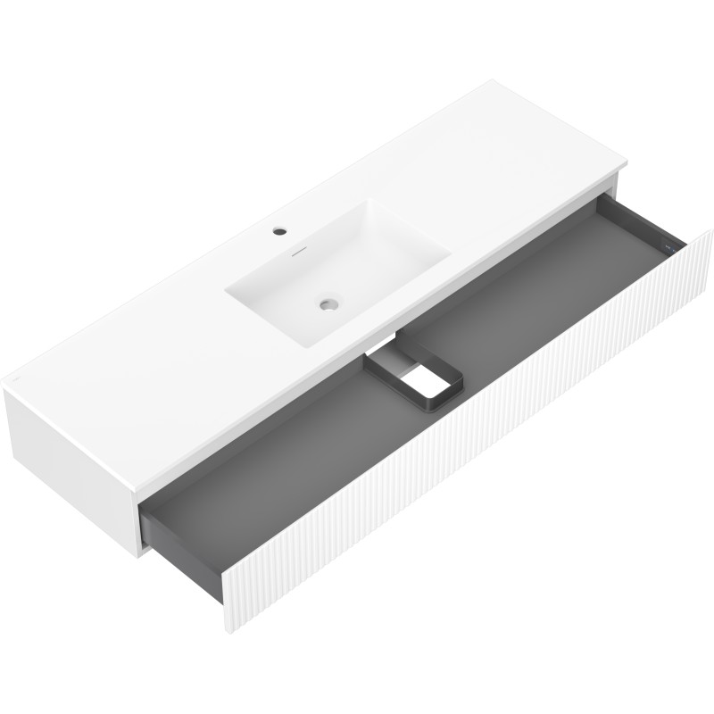 Špecifikácia produktu: Rozmery skrinky: Šírka: 160 cm Hĺbka: 46 cm Výška: 23,5 cm Farba korpusu: Matná biela Materiál korpusu: Lakovaná doska Farba čela: Matná biela Materiál čela: Lakovaná MDF doska Štruktúra čela: Drážkovaná Počet zásuviek Povrch odolný voči UV žiareniu Rozmery umývadla: Šírka: 161 cm Hĺbka: 46,5 cm Výška: 16,5 cm Farba umývadla: Matná biela Materiál umývadla: Konglomerát Otvor na prepad: Áno Otvor na batériu: Áno Zmontovaný výrobok