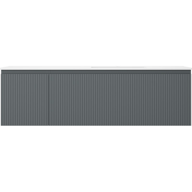Špecifikácia produktu: Rozmery skrinky: Šírka: 160 cm Hĺbka: 46 cm Výška: 47 cm Sada obsahuje: Zásuvková skrinka pod umývadlo: Šírka: 120 cm Hĺbka: 46 cm Výška: 47 cm Farba korpusu Matný grafit Materiál čela: Lakovaná MDF doska Konštrukcia čela: Drážkovaná Počet zásuviek: 1 Priestranná zásuvka s funkciou tlmenia dovierania Povrch odolný voči UV žiareniu Skrinka pod umývadlo s dvierkami: Šírka: 40 cm Výška: 47 cm Hĺbka: 46 cm Farba korusta čela: Matný grafit Materiál čela: Lakovaná MDF doska Konštrukcia čela: Drážkovaná Počet dvierok: 1 1 polica Panty s funkciou tlmenia dovierania Univerzálna montáž dvierok (ľavé/pravé) Povrch odolný voči UV žiareniu Umývadlo: Šírka: 161 cm Hĺbka: umývadlá: Matná biela Materiál umývadla: Konglomerát Otvor pre prepad: Áno Otvor pre batériu: Áno Zmontovaný výrobok