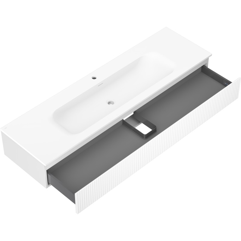 Špecifikácia produktu: Rozmery skrinky: Šírka: 160 cm Hĺbka: 46 cm Výška: 23,5 cm Farba korpusu: Matná biela Materiál korpusu: Lakovaná doska Farba čela: Matná biela Materiál čela: Lakovaná MDF doska Štruktúra čela: Drážkovaná Počet zásuviek Povrch odolný voči UV žiareniu Rozmery umývadla: Šírka: 161 cm Hĺbka: 46,5 cm Výška: 16,5 cm Farba umývadla: Matná biela Materiál umývadla: Konglomerát Otvor na prepad: Áno Otvor na batériu: Áno Zmontovaný výrobok