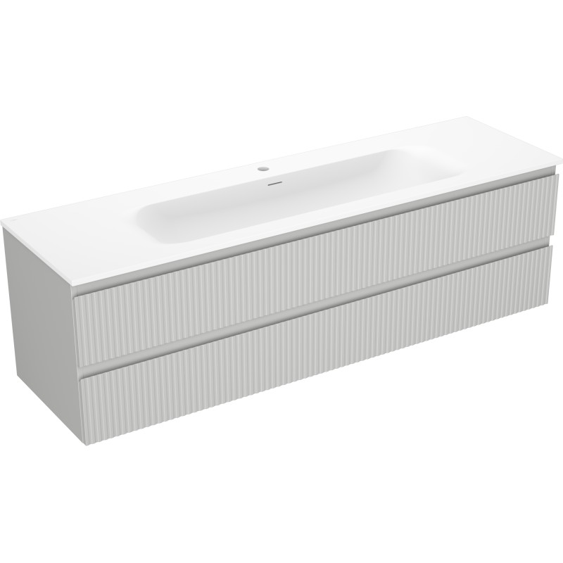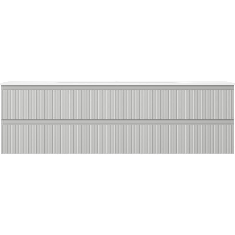 Špecifikácia produktu: Rozmery skrinky: Šírka: 160 cm Hĺbka: 46 cm Výška: 47 cm Farba korpusu: Matne šedá Materiál korpusu: Lakovaná doska Farba čela: Matne šedá Materiál čela: Lakovaná MDF doska Štruktúra čela: Drážkovaná Počet zásuviek: 2 voči UV žiareniu Rozmery umývadla: Šírka: 161 cm Hĺbka: 46,5 cm Výška: 16,5 cm Farba umývadla: Matne biela Materiál umývadla: Konglomerát Otvor pre prepad: Áno Otvor pre batériu: Áno Zmontovaný výrobok