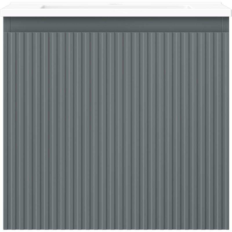 Špecifikácia produktu: Rozmery skrinky: Šírka: 50 cm Hĺbka: 46 cm Výška: 47 cm Farba korpusu: Matný grafit Materiál korpusu: Lakovaná doska Farba čela: Matný grafit Materiál čela: Lakovaná MDF doska Štruktúra čela: Drážkovaná Počet zásuviek: 1 odolný voči UV žiareniu Rozmery umývadla: Šírka: 51 cm Hĺbka: 46,5 cm Výška: 16,5 cm Farba umývadla: Matná biela Materiál umývadla: Konglomerát Otvor pre prepad: Áno Otvor pre batériu: Áno Zmontovaný výrobok