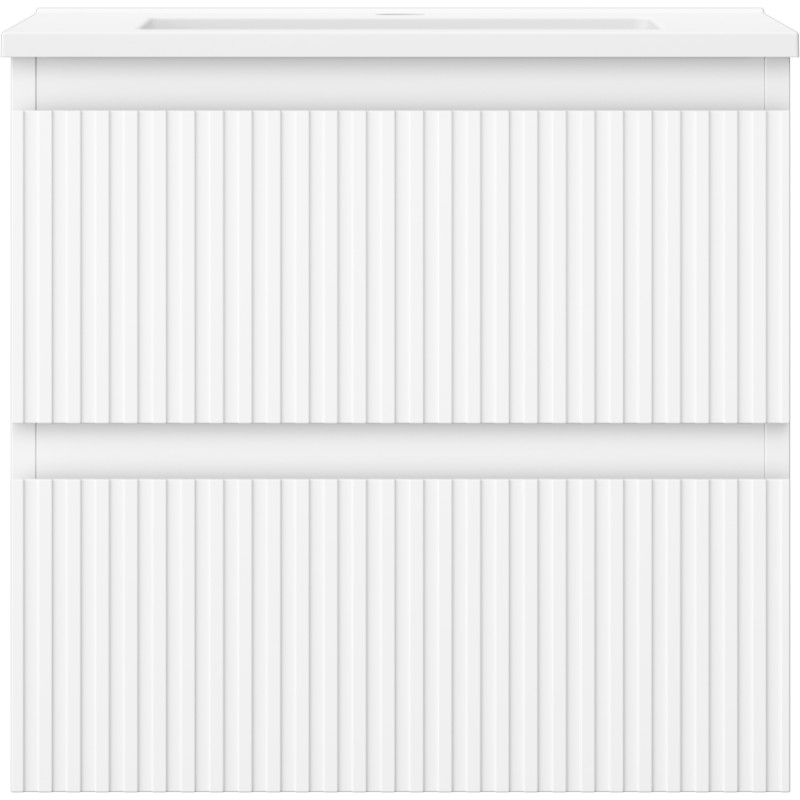 Špecifikácia produktu: Rozmery skrinky: Šírka: 50 cm Hĺbka: 46 cm Výška: 47 cm Farba korpusu: Matná biela Materiál korpusu: Lakovaná doska Farba čela: Matná biela Materiál čela: Lakovaná MDF doska Štruktúra čela: Drážkovaná Počet zásuviek: 2 odolný voči UV žiareniu Rozmery umývadla: Šírka: 51 cm Hĺbka: 46,5 cm Výška: 16,8 cm Farba umývadla: Matná biela Materiál umývadla: Konglomerát Otvor pre prepad: Áno Otvor pre batériu: Áno Zmontovaný výrobok