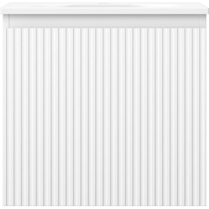 Špecifikácia produktu: Rozmery skrinky: Šírka: 50 cm Hĺbka: 46 cm Výška: 47 cm Farba korpusu: Matná biela Materiál korpusu: Lakovaná doska Farba čela: Matná biela Materiál čela: Lakovaná MDF doska Štruktúra čela: Drážkovaná Počet zásuviek: 1 voči UV žiareniu Rozmery umývadla: Šírka: 51 cm Hĺbka: 46,5 cm Výška: 16,5 cm Farba umývadla: Matná biela Materiál umývadla: Konglomerát Otvor pre prepad: Áno Otvor pre batériu: Áno Zmontovaný výrobok