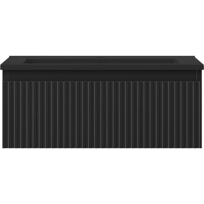 Špecifikácia produktu: Rozmery skrinky: Šírka: 60 cm Hĺbka: 46 cm Výška: 23,5 cm Farba korpusu: Matná čierna Materiál korpusu: Lakovaná doska Farba čela: Matná čierna Materiál čela: Lakovaná MDF doska Štruktúra čela: Drážkovaná Počet zásuviek: 1 UV žiarenie Rozmery umývadla: Šírka: 61 cm Hĺbka: 46,5 cm Výška: 16,5 cm Farba umývadla: Matná čierna Materiál umývadla: Konglomerát Otvor na prepad: Áno Otvor na batériu: Áno Zmontovaný výrobok