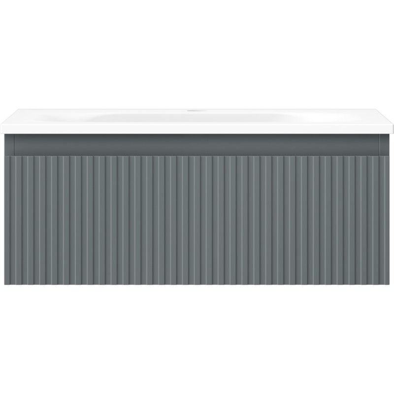 Špecifikácia produktu: Rozmery skrinky: Šírka: 60 cm Hĺbka: 46 cm Výška: 23,5 cm Farba korpusu: Matný grafit Materiál korpusu: Lakovaná doska Farba čela: Matný grafit Materiál čela: Lakovaná MDF doska Štruktúra čela: Drážkovaná Počet zásuviek: Povrch odolný voči UV žiareniu Rozmery umývadla: Šírka: 61 cm Hĺbka: 46,5 cm Výška: 16,5 cm Farba umývadla: Matná biela Materiál umývadla: Konglomerát Otvor pre prepad: Áno Otvor pre batériu: Áno Zmontovaný výrobok