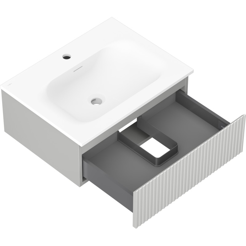 Špecifikácia produktu: Rozmery skrinky: Šírka: 60 cm Hĺbka: 46 cm Výška: 23,5 cm Farba korpusu: Matne šedá Materiál korpusu: Lakovaná doska Farba čela: Matne šedá Materiál čela: Lakovaná MDF doska Štruktúra čela: Drážkovaná Počet zásuviek: 1 voči UV žiareniu Rozmery umývadla: Šírka: 61 cm Hĺbka: 46,5 cm Výška: 16,5 cm Farba umývadla: Matne biela Materiál umývadla: Konglomerát Otvor pre prepad: Áno Otvor pre batériu: Áno Zmontovaný výrobok