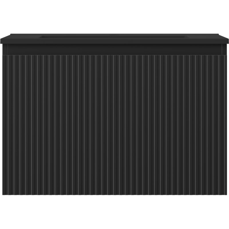 Špecifikácia produktu: Rozmery skrinky: Šírka: 70 cm Hĺbka: 46 cm Výška: 47 cm Farba korpusu: Matná čierna Materiál korpusu: Lakovaná doska Farba čela: Matná čierna Materiál čela: Lakovaná MDF doska Štruktúra čela: Drážkovaná Počet zásuviek: 1 Priestranná žiarenia Rozmery umývadla: Šírka: 71 cm Hĺbka: 46,5 cm Výška: 16,5 cm Farba umývadla: Matná čierna Materiál umývadla: Konglomerát Otvor pre prepad: Áno Otvor pre batériu: Áno Zmontovaný výrobok