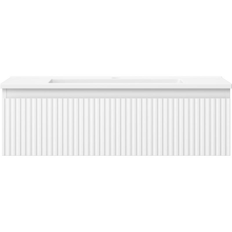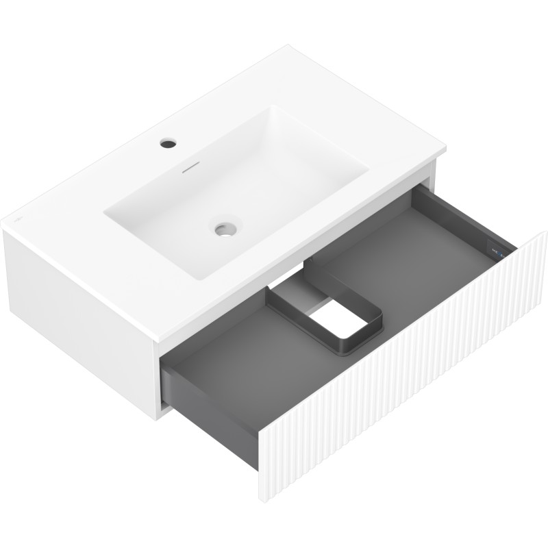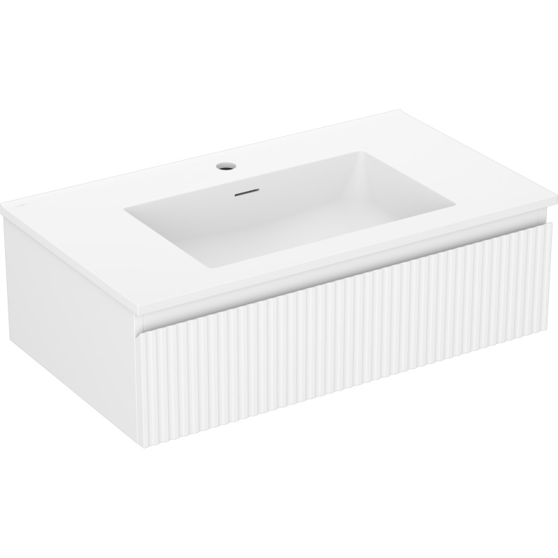 Špecifikácia produktu: Rozmery skrinky: Šírka: 80 cm Hĺbka: 46 cm Výška: 23,5 cm Farba korpusu: Matná biela Materiál korpusu: Lakovaná doska Farba čela: Matná biela Materiál čela: Lakovaná MDF doska Štruktúra čela: Drážkovaná Počet zásuviek: Povrch odolný voči UV žiareniu Rozmery umývadla: Šírka: 81 cm Hĺbka: 46,5 cm Výška: 16,5 cm Farba umývadla: Matná biela Materiál umývadla: Konglomerát Otvor pre prepad: Áno Otvor pre batériu: Áno Zmontovaný výrobok