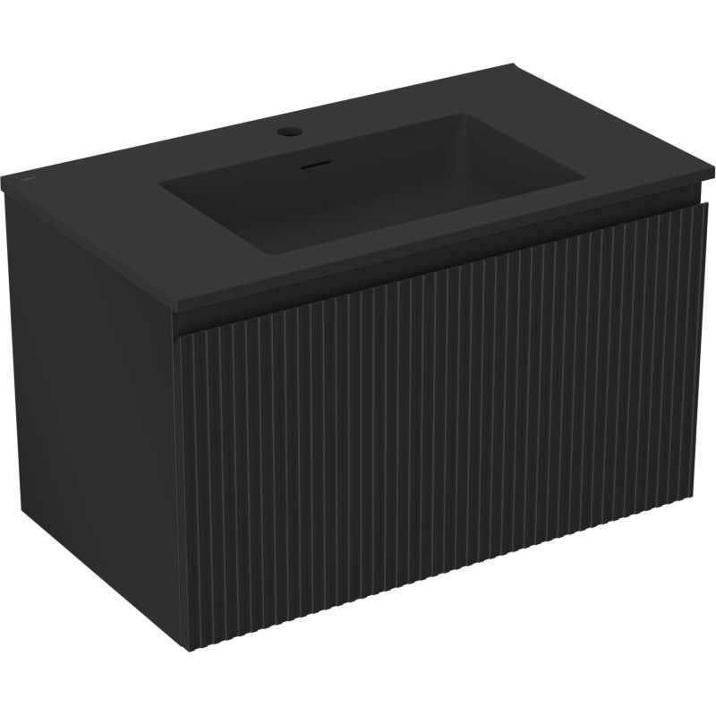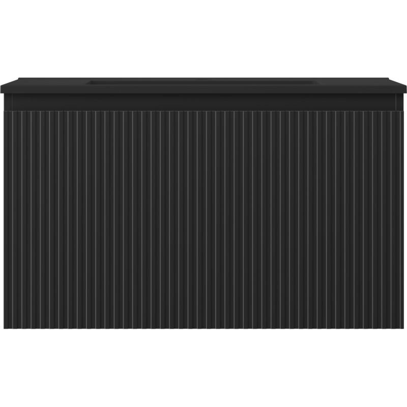 Špecifikácia produktu: Rozmery skrinky: Šírka: 80 cm Hĺbka: 46 cm Výška: 47 cm Farba korpusu: Matná čierna Materiál korpusu: Lakovaná doska Farba čela: Matná čierna Materiál čela: Lakovaná MDF doska Štruktúra čela: Drážkovaná Počet zásuviek: 1 Priestorná žiarenie Rozmery umývadla: Šírka: 81 cm Hĺbka: 46,5 cm Výška: 16,5 cm Farba umývadla: Matná čierna Materiál umývadla: Konglomerát Otvor pre prepad: Áno Otvor pre batériu: Áno Zmontovaný výrobok