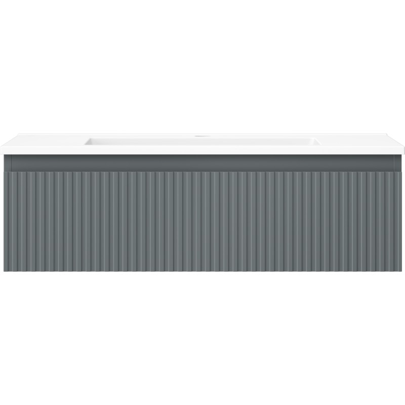 Špecifikácia produktu: Rozmery skrinky: Šírka: 80 cm Hĺbka: 46 cm Výška: 23,5 cm Farba korpusu: Matný grafit Materiál korpusu: Lakovaná doska Farba čela: Matný grafit Materiál čela: Lakovaná MDF doska Štruktúra čela: Drážkovaná Počet zásuviek: Povrch odolný voči UV žiareniu Rozmery umývadla: Šírka: 81 cm Hĺbka: 46,5 cm Výška: 16,5 cm Farba umývadla: Matná biela Materiál umývadla: Konglomerát Otvor pre prepad: Áno Otvor pre batériu: Áno Zmontovaný výrobok
