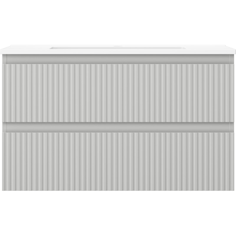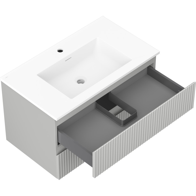 Špecifikácia produktu: Rozmery skrinky: Šírka: 80 cm Hĺbka: 46 cm Výška: 47 cm Farba korpusu: Matne šedá Materiál korpusu: Lakovaná doska Farba čela: Matne šedá Materiál čela: Lakovaná MDF doska Štruktúra čela: Drážkovaná Počet zásuviek: 2 UV žiarenie Rozmery umývadla: Šírka: 81 cm Hĺbka: 46,5 cm Výška: 16,5 cm Farba umývadla: Matne biela Materiál umývadla: Konglomerát Otvor na prepad: Áno Otvor na batériu: Áno Zmontovaný výrobok