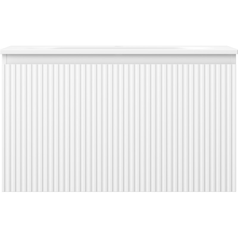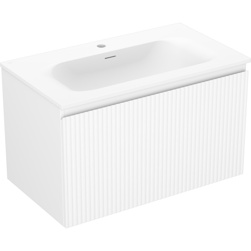 Špecifikácia produktu: Rozmery skrinky: Šírka: 80 cm Hĺbka: 46 cm Výška: 47 cm Farba korpusu: Matná biela Materiál korpusu: Lakovaná doska Farba čela: Matná biela Materiál čela: Lakovaná MDF doska Štruktúra čela: Drážkovaná Počet zásuviek: 1 odolný voči UV žiareniu Rozmery umývadla: Šírka: 81 cm Hĺbka: 46,5 cm Výška: 16,5 cm Farba umývadla: Matná biela Materiál umývadla: Konglomerát Otvor pre prepad: Áno Otvor pre batériu: Áno Zmontovaný výrobok