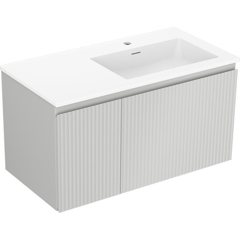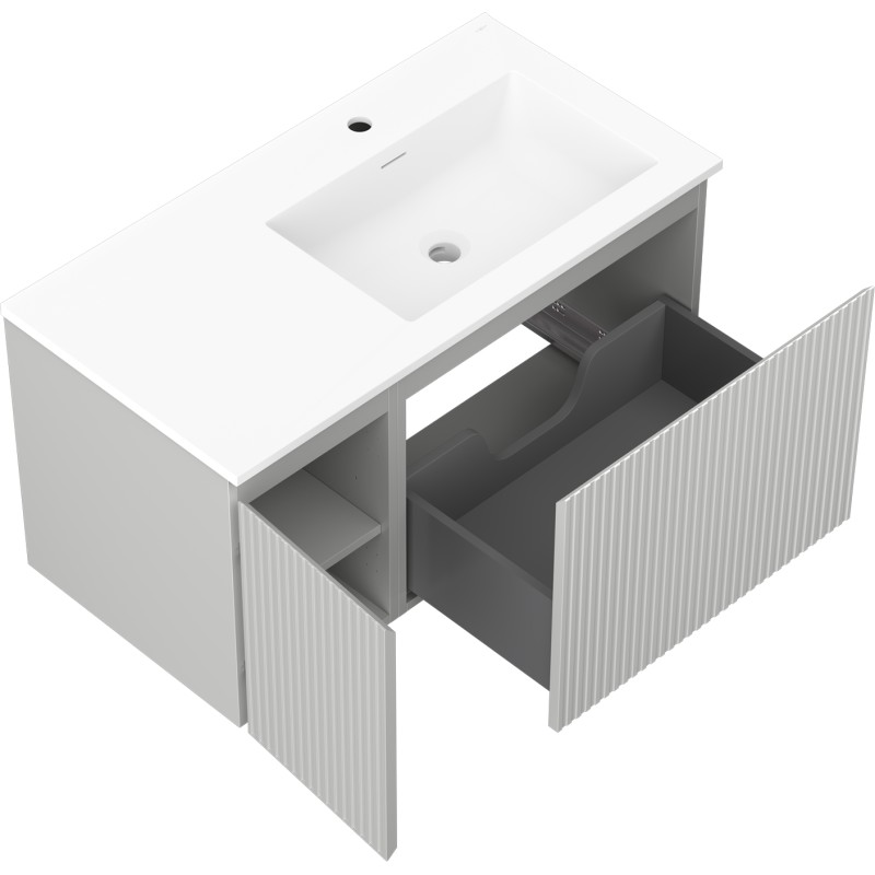 Špecifikácia produktu: Rozmery skrinky: Šírka: 90 cm Hĺbka: 46 cm Výška: 47 cm Sada obsahuje: Zásuvková skrinka pod umývadlo: Šírka: 60 cm Hĺbka: 46 cm Výška: 47 cm Farba korpusu: Matne šedá Materiál korpusu: Matne šedá Materiál korpusu: Lakovaná MDF doska Konštrukcia čela: Drážkovaná Počet zásuviek: 1 Priestranná zásuvka s funkciou tlmenia dovierania Povrch odolný voči UV žiareniu Skrinka pod umývadlo s dvierkami: Šírka: 30 cm Výška: 47 cm Hĺbka: 46 cm Farba korpusu: Matne šedá Materiál čela: Lakovaná MDF doska Konštrukcia čela: Drážkovaná Počet dvierok: 1 1 polica Pánty s funkciou tlmenia dovierania Univerzálna montáž dvierok (ľavé/pravé) Povrch odolný voči UV žiareniu Umývadlo: Šírka: 91 cm Hĺbka: 46,5 cm biela Materiál umývadla: Konglomerát Otvor na prepad: Áno Otvor na batériu: Áno Zmontovaný výrobok