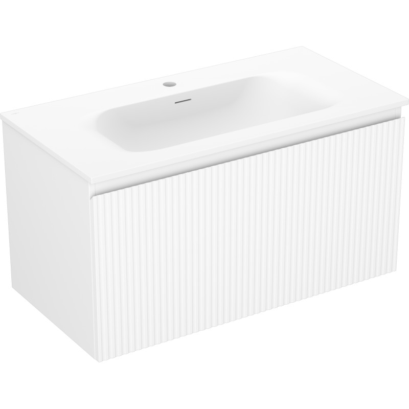 Špecifikácia produktu: Rozmery skrinky: Šírka: 90 cm Hĺbka: 46 cm Výška: 47 cm Farba korpusu: Matná biela Materiál korpusu: Lakovaná doska Farba čela: Matná biela Materiál čela: Lakovaná MDF doska Štruktúra čela: Drážkovaná Počet zásuviek: 1 voči UV žiareniu Rozmery umývadla: Šírka: 91 cm Hĺbka: 46,5 cm Výška: 16,5 cm Farba umývadla: Matná biela Materiál umývadla: Konglomerát Otvor pre prepad: Áno Otvor pre batériu: Áno Zmontovaný výrobok
