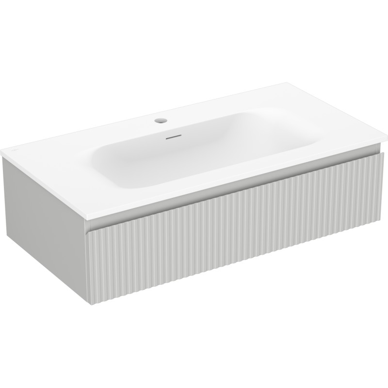 Špecifikácia produktu: Rozmery skrinky: Šírka: 90 cm Hĺbka: 46 cm Výška: 23,5 cm Farba korpusu: Matne šedá Materiál korpusu: Lakovaná doska Farba čela: Matne šedá Materiál čela: Lakovaná MDF doska Štruktúra čela: Drážkovaná Počet zásuviek: 1 voči UV žiareniu Rozmery umývadla: Šírka: 91 cm Hĺbka: 46,5 cm Výška: 16,5 cm Farba umývadla: Matne biela Materiál umývadla: Konglomerát Otvor pre prepad: Áno Otvor pre batériu: Áno Zmontovaný výrobok
