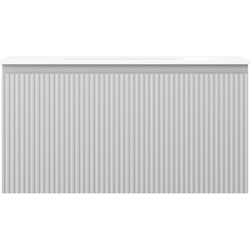 Špecifikácia produktu: Rozmery skrinky: Šírka: 90 cm Hĺbka: 46 cm Výška: 47 cm Farba korpusu: Matne šedá Materiál korpusu: Lakovaná doska Farba čela: Matne šedá Materiál čela: Lakovaná MDF doska Štruktúra čela: Drážkovaná Počet zásuviek: 1 UV žiarenie Rozmery umývadla: Šírka: 91 cm Hĺbka: 46,5 cm Výška: 16,5 cm Farba umývadla: Matne biela Materiál umývadla: Konglomerát Otvor pre prepad: Áno Otvor pre batériu: Áno Zmontovaný výrobok