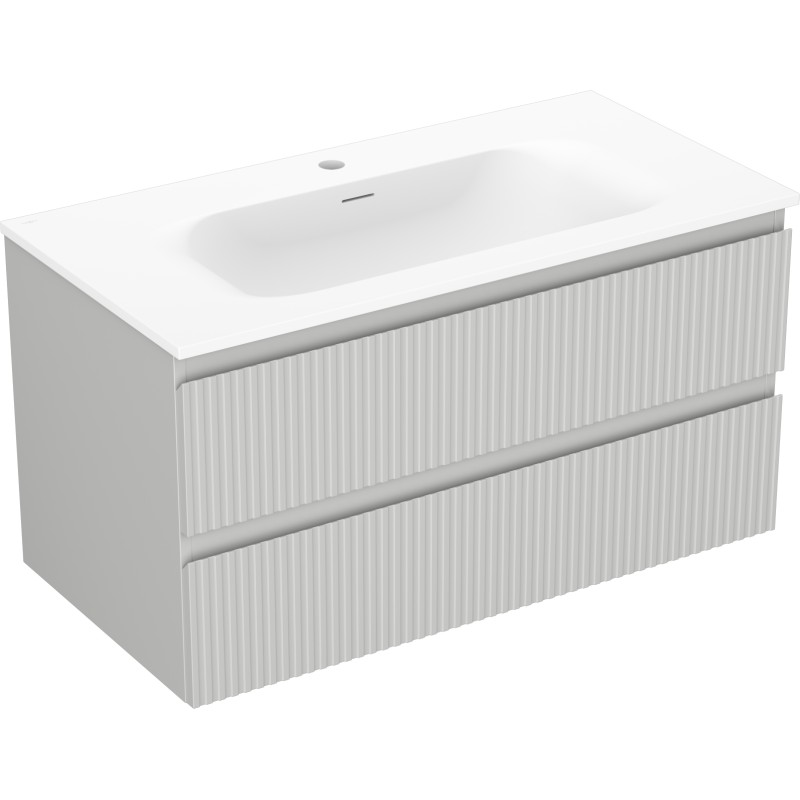 Špecifikácia produktu: Rozmery skrinky: Šírka: 90 cm Hĺbka: 46 cm Výška: 47 cm Farba korpusu: Matne šedá Materiál korpusu: Lakovaná doska Farba čela: Matne šedá Materiál čela: Lakovaná MDF doska Štruktúra čela: Drážkovaná Počet zásuviek: 2 Pros UV žiarenie Rozmery umývadla: Šírka: 91 cm Hĺbka: 46,5 cm Výška: 16,5 cm Farba umývadla: Matne biela Materiál umývadla: Konglomerát Otvor pre prepad: Áno Otvor pre batériu: Áno Zmontovaný výrobok