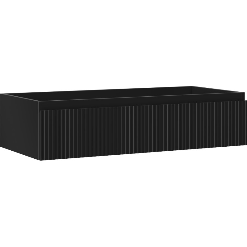 Špecifikácia produktu: Šírka: 100 cm Výška: 23,5 cm Hĺbka: 46 cm Farba korpusu: Matná čierna Materiál korpusu: Lakovaná doska Farba čela: Matná čierna Materiál čela: Lakovaná MDF doska Štruktúra čela: Drážkovaná Počet zásuviek: 1 Priestranná zásuvka s funkciou zásuvky Povrch odolný voči UV žiareniu Kombinovateľný s pracovnou doskou alebo umývadlom Otis, Vela Zmontovaný produkt