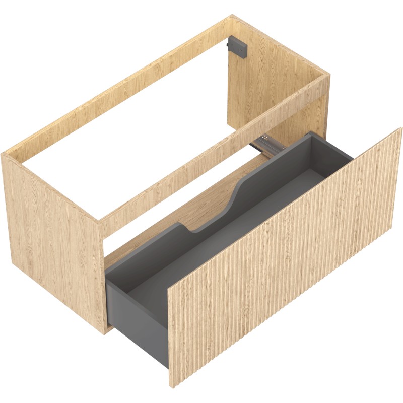 Špecifikácia produktu: Šírka: 100 cm Výška: 47 cm Hĺbka: 46 cm Farba korpusu: Dub Materiál korpusu: Doska + PVC fólia Farba čela: Dub Materiál čela: MDF doska + PVC fólia Štruktúra čela: Drážkovaná Počet zásuviek: 1 Priestranná zásuvka s funkciou tlmný Povrch odolný voči UV žiareniu Kombinovateľný s pracovnou doskou alebo umývadlom Otis, Vela Zmontovaný produkt