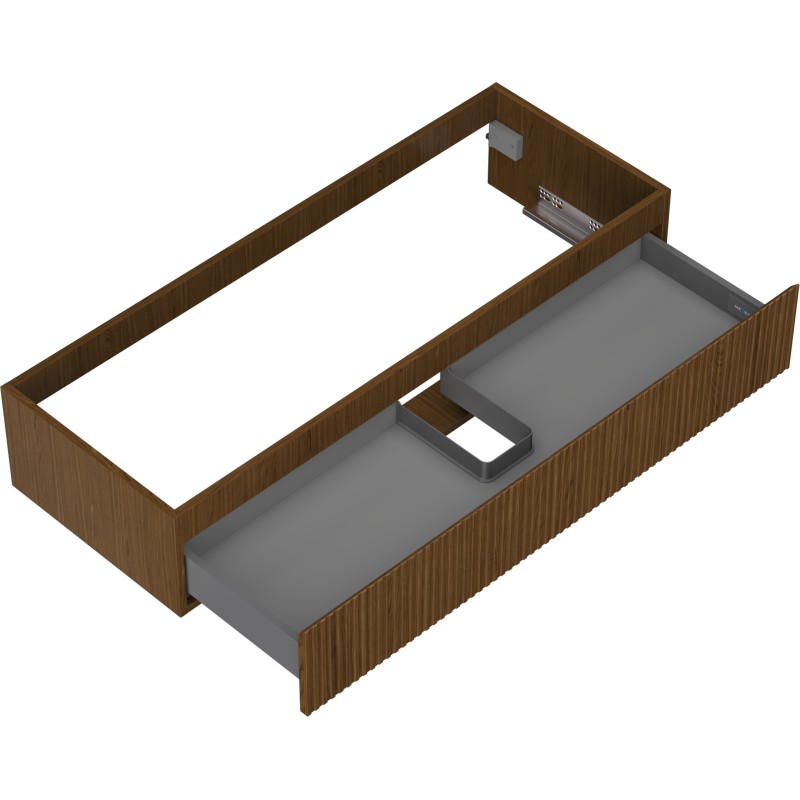 Špecifikácia produktu: Šírka: 120 cm Výška: 23,5 cm Hĺbka: 46 cm Farba korpusu: Orech Materiál korpusu: Doska + PVC fólia Farba čela: Orech Materiál čela: MDF doska + PVC fólia Štruktúra čela: Drážkovaná Počet zásuviek: 1 Priestranná zásuvka prístup k obsahu zásuvky Povrch odolný voči UV žiareniu Možno doplniť pracovnou doskou alebo umývadlom Otis, Vela Zmontovaný produkt