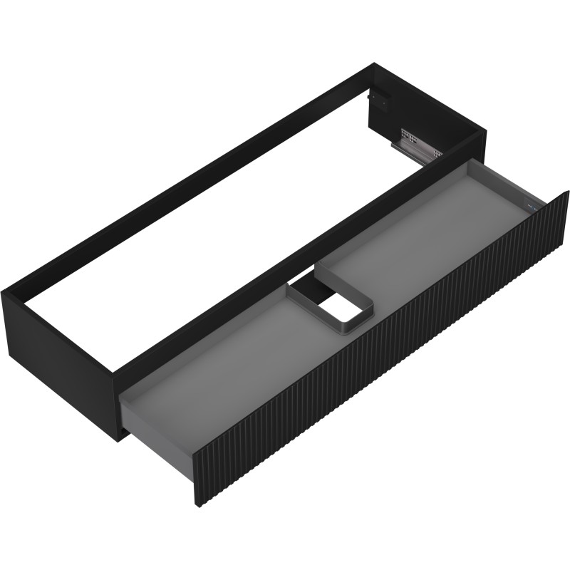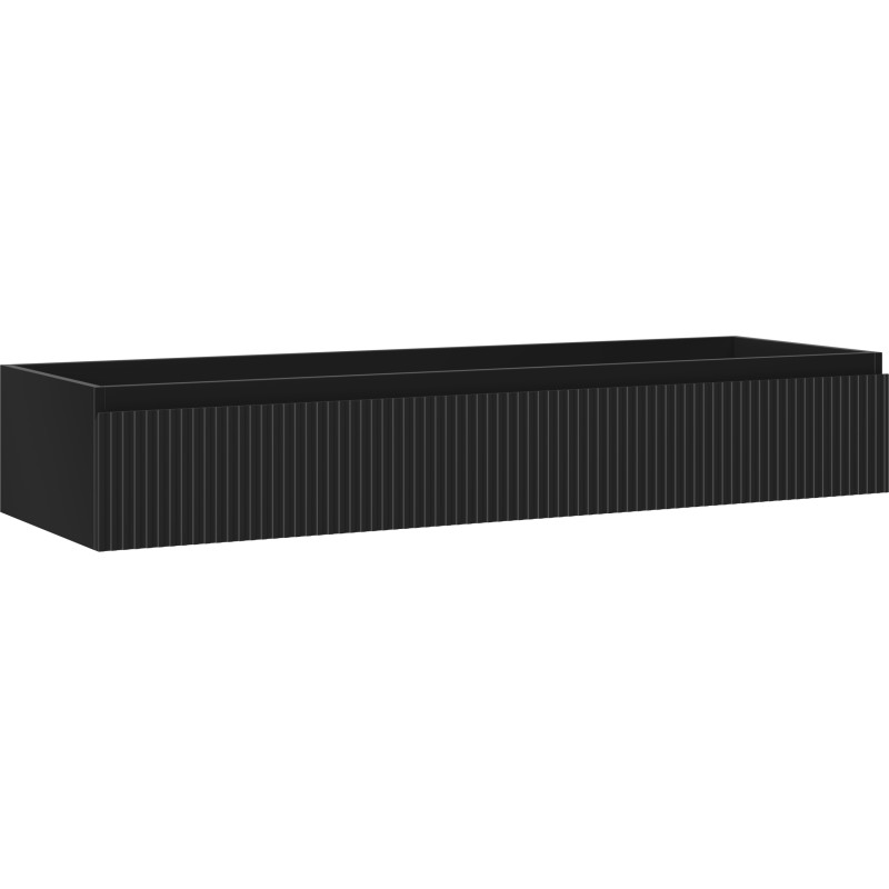 Špecifikácia produktu: Šírka: 140 cm Výška: 23,5 cm Hĺbka: 46 cm Farba korpusu: Matná čierna Materiál korpusu: Lakovaná doska Farba čela: Matná čierna Materiál čela: Lakovaná MDF doska Konštrukcia čela: Drážkovaná Počet zásuviek: 1 Priestranná zásuvka s funkciou zásuvky Povrch odolný voči UV žiareniu Kombinovateľný s pracovnou doskou alebo umývadlom Otis, Vela Zmontovaný produkt
