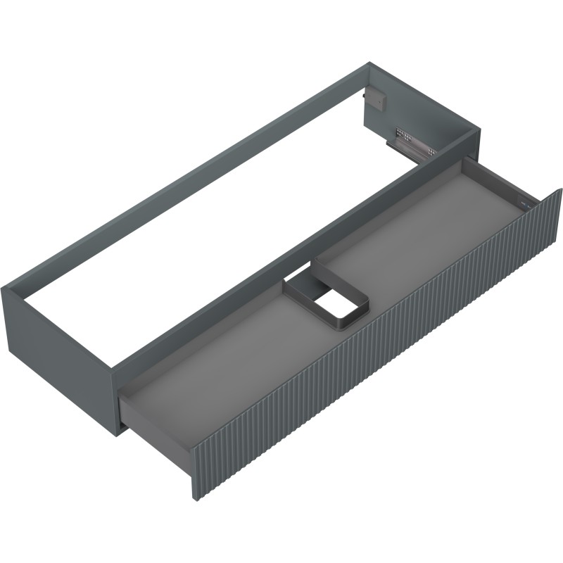 Špecifikácia produktu: Šírka: 140 cm Výška: 23,5 cm Hĺbka: 46 cm Farba korpusu: Matný grafit Materiál korpusu: Lakovaná doska Farba čela: Matný grafit Materiál čela: Lakovaná MDF doska Štruktúra čela: Drážkovaná Počet zásuviek: 1 Priestranná zásuvka prístup k obsahu zásuvky Povrch odolný voči UV žiareniu Kombinovateľný s pracovnou doskou alebo umývadlom Otis, Vela Zostavený produkt