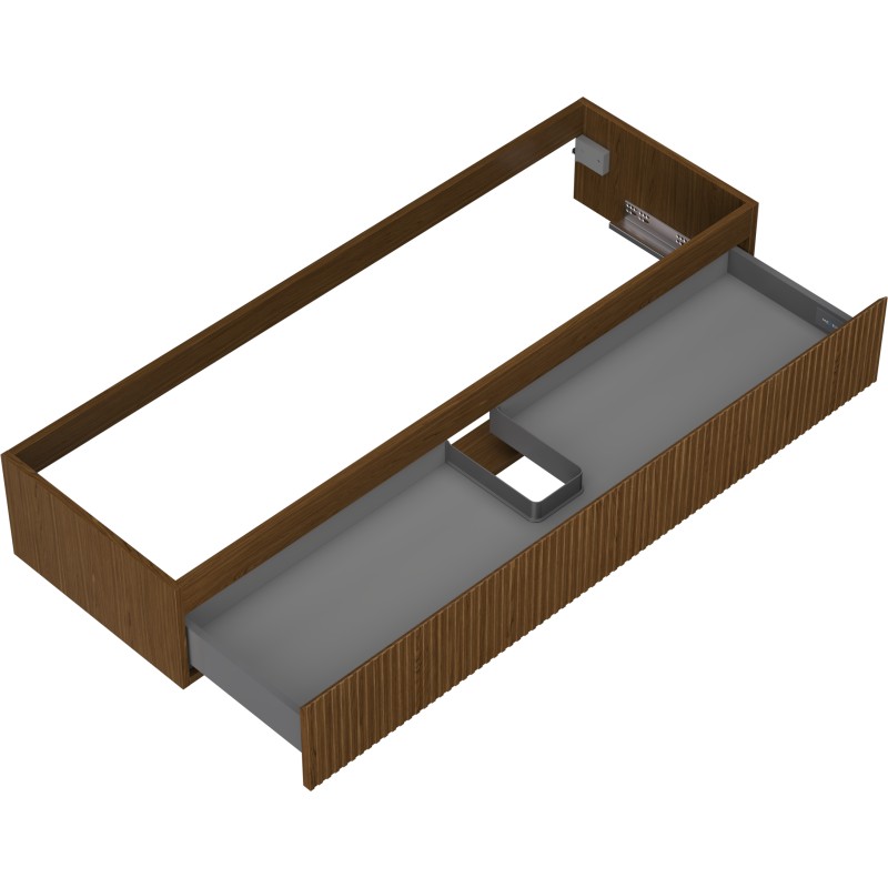 Špecifikácia produktu: Šírka: 140 cm Výška: 23,5 cm Hĺbka: 46 cm Farba korpusu: Orech Materiál korpusu: Doska + PVC fólia Farba čela: Orech Materiál čela: MDF doska + PVC fólia Štruktúra čela: Drážkovaná Počet zásuviek: 1 Priestranná zásuvka prístup k obsahu zásuvky Povrch odolný voči UV žiareniu Kombinovateľný s pracovnou doskou alebo umývadlom Otis, Vela Zostavený produkt
