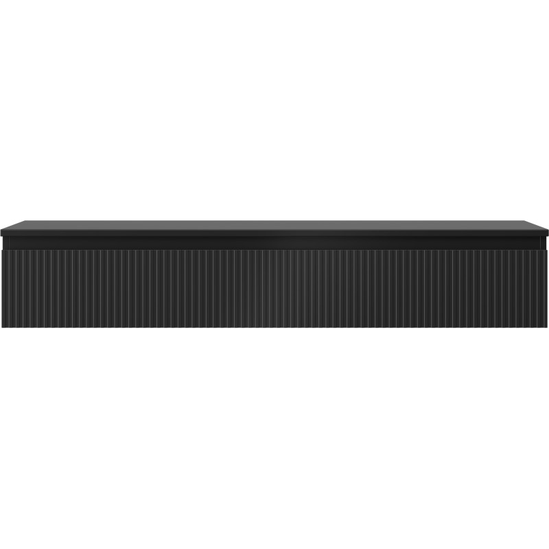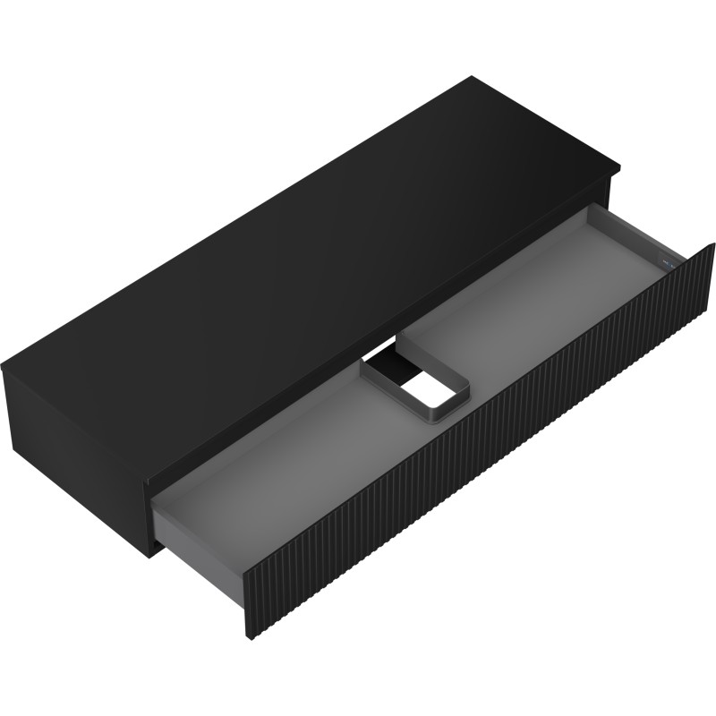 Špecifikácia produktu: Rozmery skrinky: Šírka: 140 cm Výška: 23,5 cm Hĺbka: 46 cm Farba korpusu: Matná čierna Materiál korpusu: Lakovaná doska Farba čela: Matná čierna Materiál čela: Lakovaná MDF doska Štruktúra čela: Drážkovaná Počet zásuviek: 1 výsuv pre ľahký prístup k obsahu zásuvky Povrch odolný voči UV žiareniu Rozmery pracovnej dosky: Šírka: 140,6 cm Hĺbka: 46,5 cm Hrúbka: 1,8 cm Farba pracovnej dosky: Matná čierna Materiál pracovnej dosky: Lakovaná MDF doska Povrch odolný voči UV žiareniu Ideálny ako podstavec