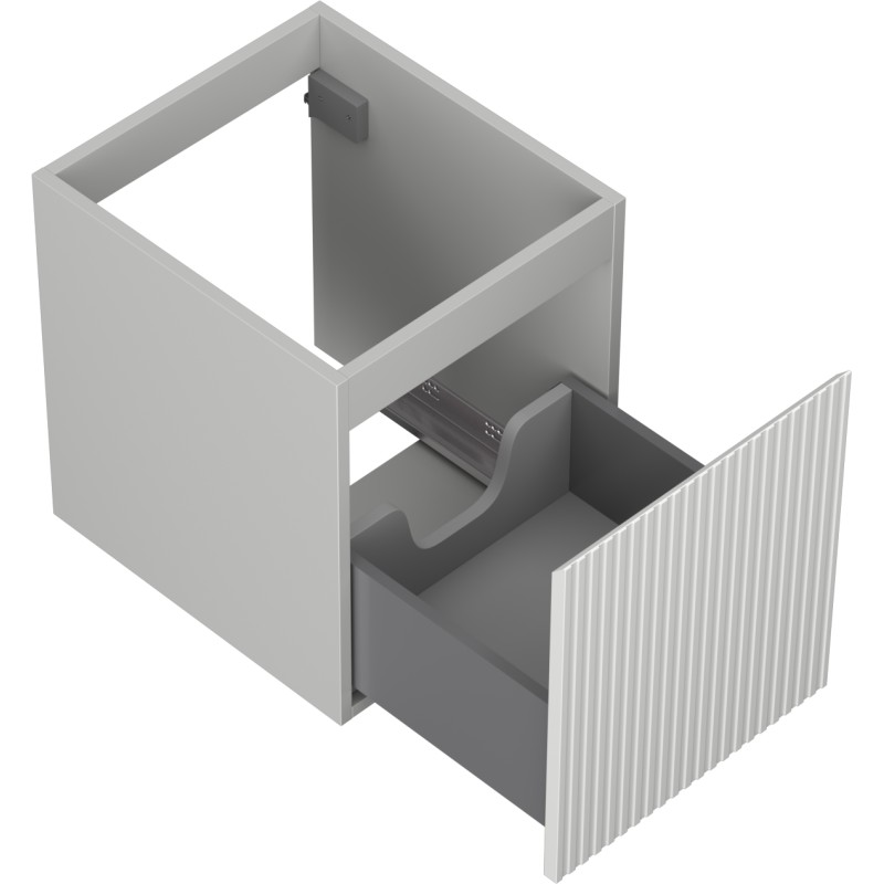 Špecifikácia produktu: Šírka: 40 cm Výška: 47 cm Hĺbka: 46 cm Farba korpusu: Matne šedá Materiál korpusu: Lakovaná doska Farba čela: Matne šedá Materiál čela: Lakovaná MDF doska Štruktúra čela: Drážkovaná Počet zásuviek: 1 Priestranná zásuvka s funkciou tlm Povrch odolný voči UV žiareniu Možno doplniť pracovnou doskou alebo umývadlom Otis, Vela Zmontovaný produkt