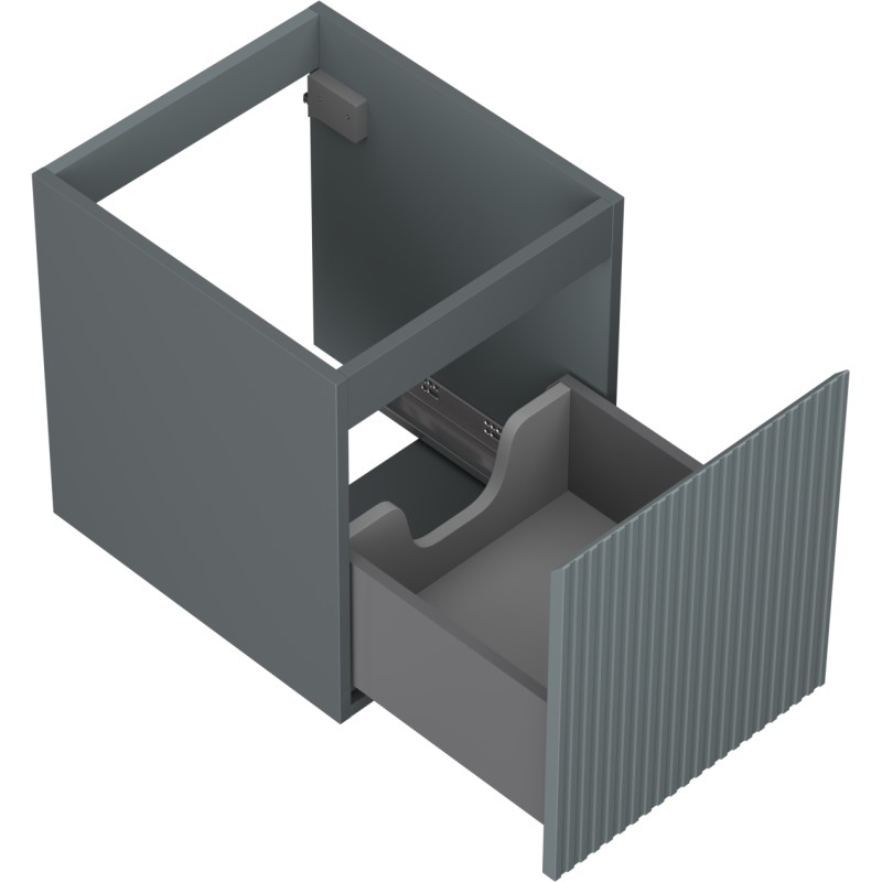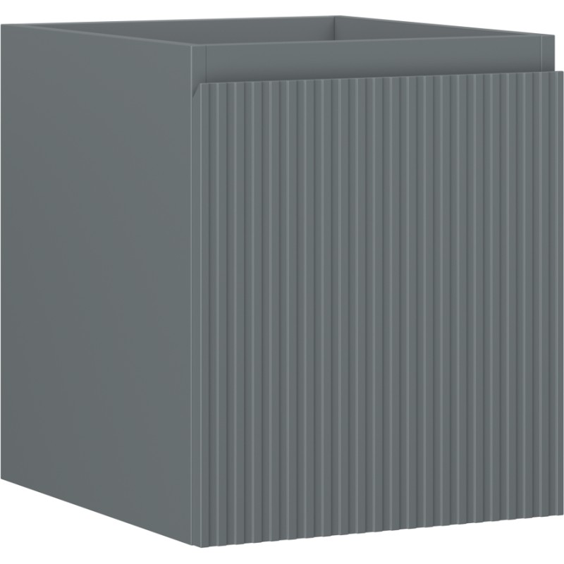 Špecifikácia produktu: Šírka: 40 cm Výška: 47 cm Hĺbka: 46 cm Farba korpusu: Matný grafit Materiál korpusu: Lakovaná doska Farba čela: Matný grafit Materiál čela: Lakovaná MDF doska Štruktúra čela: Drážkovaná Počet zásuviek: 1 Priestranná zásuvka s funkciou zásuvky Povrch odolný voči UV žiareniu Kombinovateľný s pracovnou doskou alebo umývadlom Otis, Vela Zmontovaný produkt