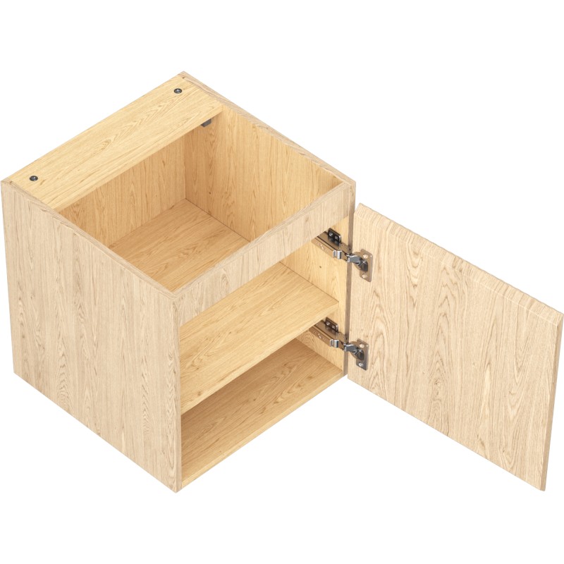 Špecifikácia produktu: Šírka: 45 cm Výška: 47 cm Hĺbka: 46 cm Farba korpusu: Dub Materiál korpusu: Doska + PVC fólia Farba čela: Dub Materiál čela: MDF doska + PVC fólia Konštrukcia čela: Drážkovaná Počet dvierok: 1 1 polica Panty s funkciou tlum (ľavé/pravé) Povrch odolný voči UV žiareniu Možno doplniť pracovnou doskou alebo umývadlom Otis, Vela Zmontovaný produkt