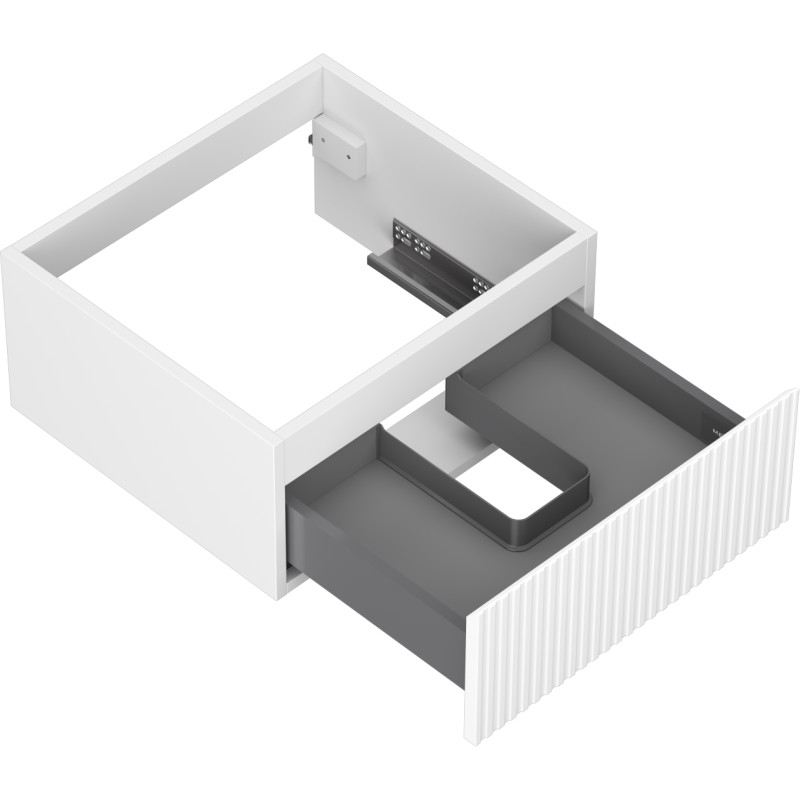 Špecifikácia produktu: Šírka: 50 cm Výška: 23,5 cm Hĺbka: 46 cm Farba korpusu: Matná biela Materiál korpusu: Lakovaná doska Farba čela: Matná biela Materiál čela: Lakovaná MDF doska Štruktúra čela: Drážkovaná Počet zásuviek: 1 Priestranná zásuvka s priestrannou zásuvkou k obsahu zásuvky Povrch odolný voči UV žiareniu Kombinovateľný s pracovnou doskou alebo umývadlom Otis, Vela Zmontovaný produkt