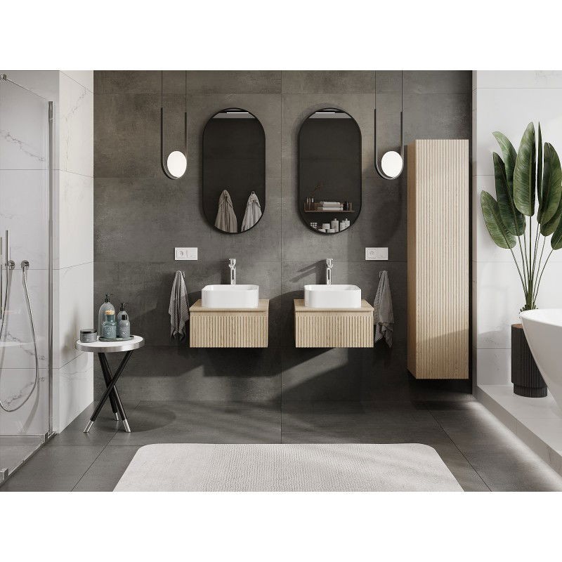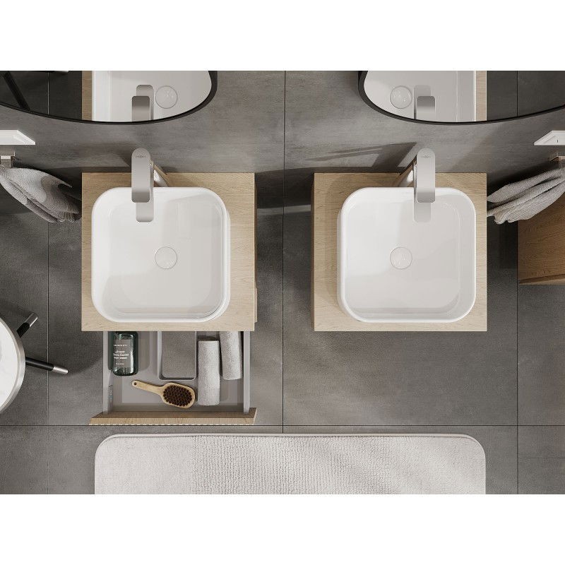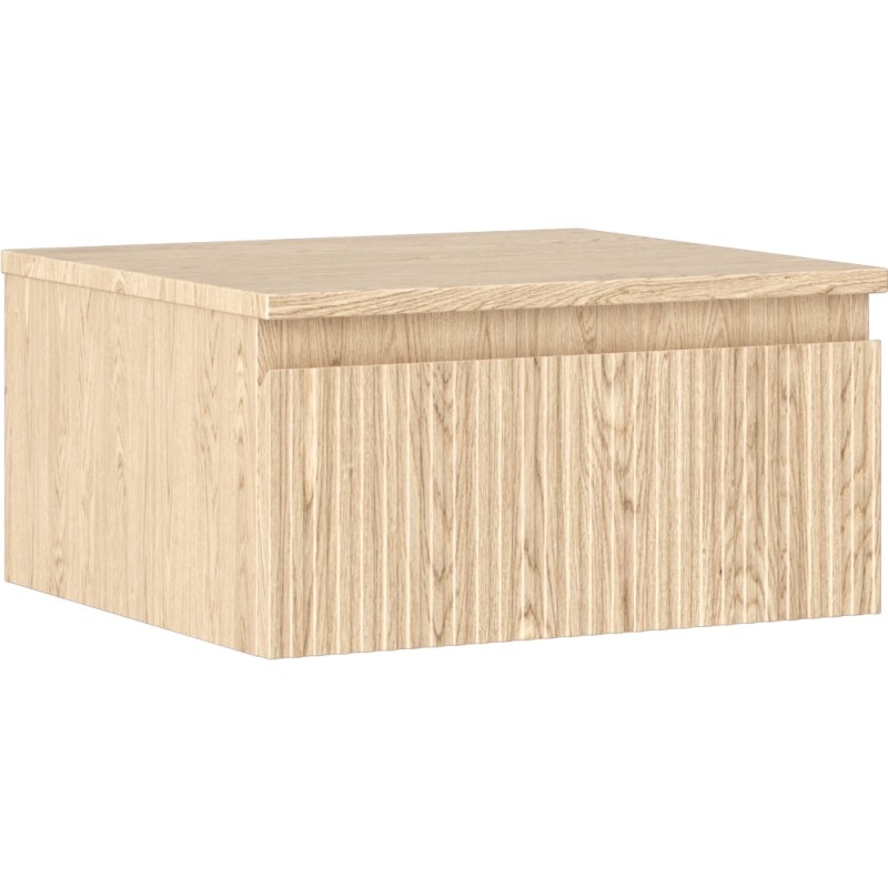 Špecifikácia produktu: Rozmery skrinky: Šírka: 50 cm Výška: 23,5 cm Hĺbka: 46 cm Farba korpusu: Dub Materiál korpusu: Doska + PVC fólia Farba čela: Dub Materiál čela: MDF doska + PVC fólia Štruktúra čela: Drážkovaná Počet zásuviek: 1 pre ľahký prístup k obsahu zásuvky Povrch odolný voči UV žiareniu Rozmery pracovnej dosky: Šírka: 50,6 cm Hĺbka: 46,5 cm Hrúbka: 1,8 cm Farba pracovnej dosky: Dub Materiál pracovnej dosky: MDF doska + PVC fólia Povrch odolný voči UV žiareniu Ideálny ako podstavec pre umyva
