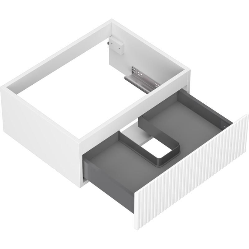 Špecifikácia produktu: Šírka: 60 cm Výška: 23,5 cm Hĺbka: 46 cm Farba korpusu: Matná biela Materiál korpusu: Lakovaná doska Farba čela: Matná biela Materiál čela: Lakovaná MDF doska Štruktúra čela: Drážkovaná Počet zásuviek: 1 Priestranná zásuvka s priestrannou zásuvkou k obsahu zásuvky Povrch odolný voči UV žiareniu Kombinovateľný s pracovnou doskou alebo umývadlom Otis, Vela Zmontovaný produkt