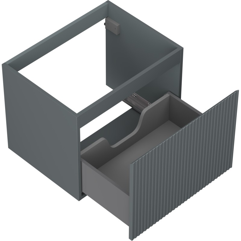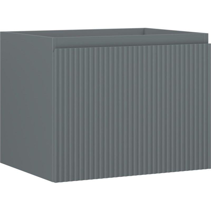 Špecifikácia produktu: Šírka: 60 cm Výška: 47 cm Hĺbka: 46 cm Farba korpusu: Matný grafit Materiál korpusu: Lakovaná doska Farba čela: Matný grafit Materiál čela: Lakovaná MDF doska Štruktúra čela: Drážkovaná Počet zásuviek: 1 Priestranná zásuvka s funkciou zásuvky Povrch odolný voči UV žiareniu Kombinovateľný s pracovnou doskou alebo umývadlom Otis, Vela Zmontovaný produkt