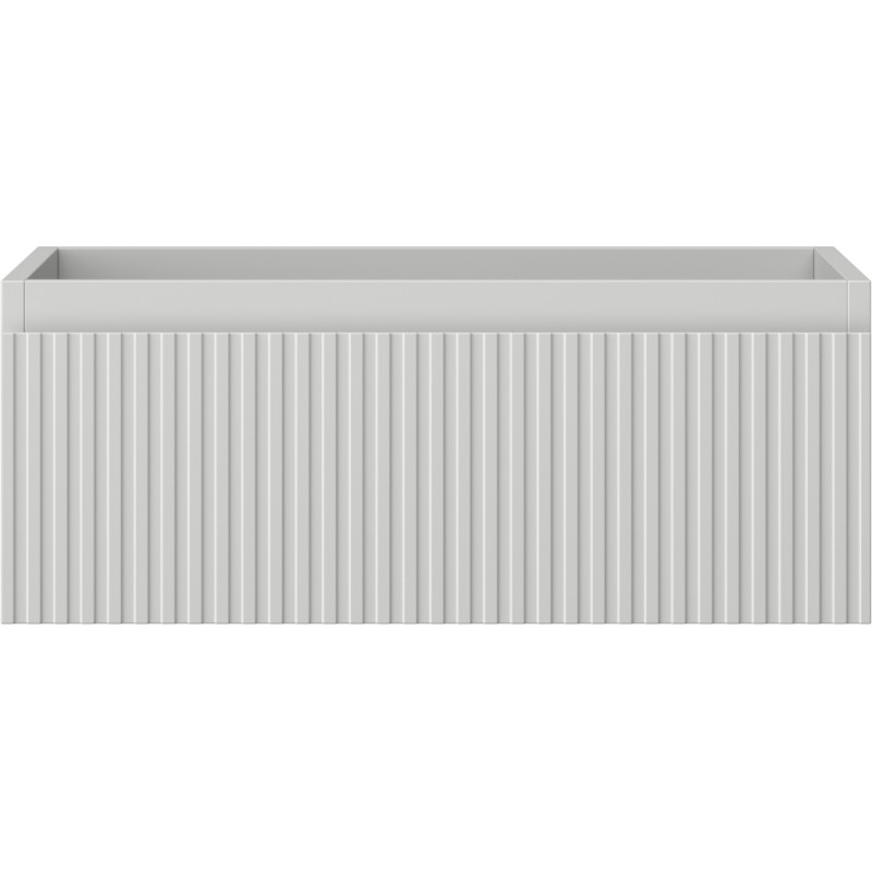 Špecifikácia produktu: Šírka: 60 cm Výška: 23,5 cm Hĺbka: 46 cm Farba korpusu: Matne šedá Materiál korpusu: Lakovaná doska Farba čela: Matne šedá Materiál čela: Lakovaná MDF doska Štruktúra čela: Drážkovaná Počet zásuviek: 1 Priestranná zásuvka s funkciou zásuvky Povrch odolný voči UV žiareniu Kombinovateľný s pracovnou doskou alebo umývadlom Otis, Vela Zmontovaný produkt