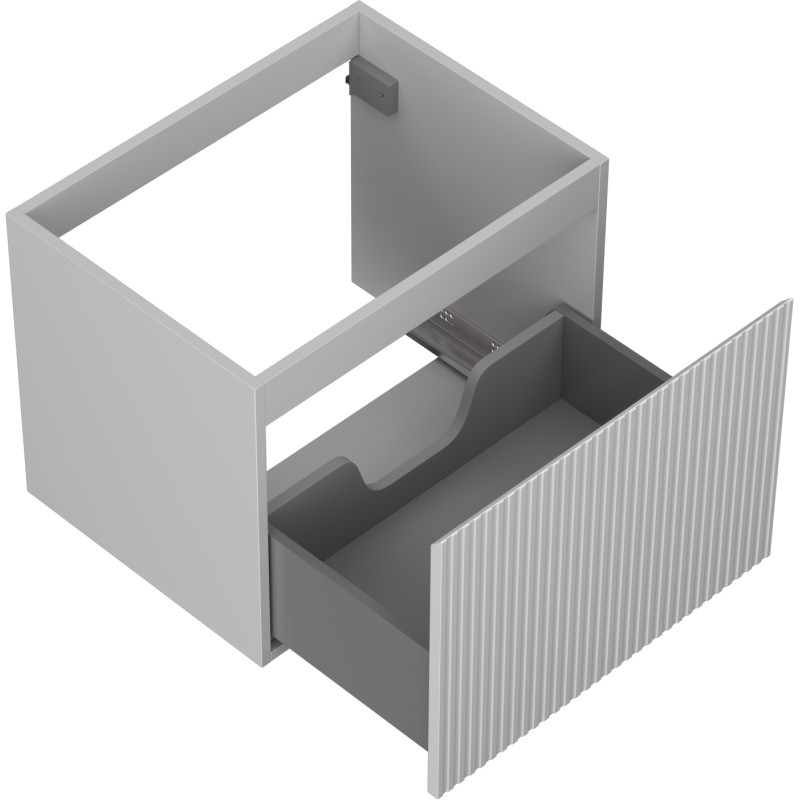Špecifikácia produktu: Šírka: 60 cm Výška: 47 cm Hĺbka: 46 cm Farba korpusu: Matne šedá Materiál korpusu: Lakovaná doska Farba čela: Matne šedá Materiál čela: Lakovaná MDF doska Štruktúra čela: Drážkovaná Počet zásuviek: 1 Priestranná zásuvka s funkciou tlm Povrch odolný voči UV žiareniu Kombinovateľný s pracovnou doskou alebo umývadlom Otis, Vela Zmontovaný produkt