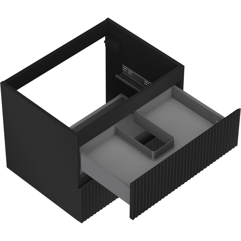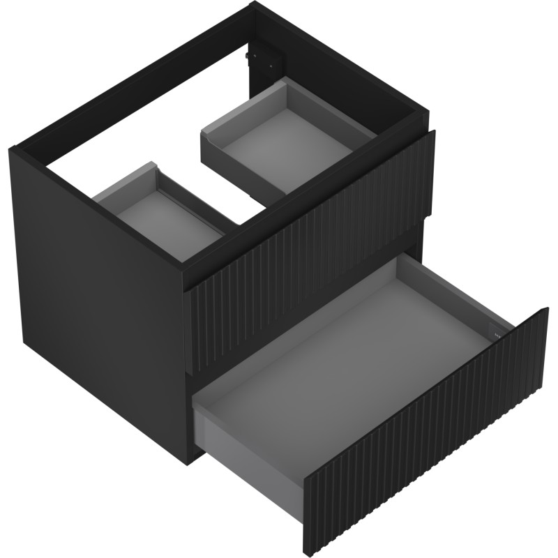 Špecifikácia produktu: Šírka: 60 cm Výška: 47 cm Hĺbka: 46 cm Farba korpusu: Matná čierna Materiál korpusu: Lakovaná doska Farba čela: Matná čierna Materiál čela: Lakovaná MDF doska Konštrukcia čela: Drážkovaná Počet zásuviek: 2 Priestranná zásuvka s funkciou tlmeného Povrch odolný voči UV žiareniu Kombinovateľný s pracovnou doskou alebo umývadlom Otis, Vela Zmontovaný produkt