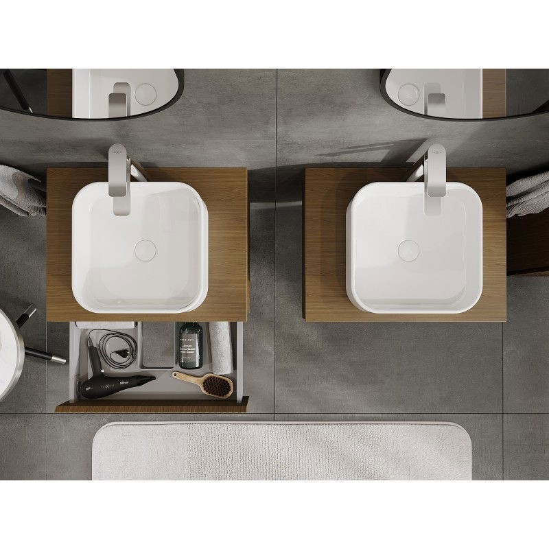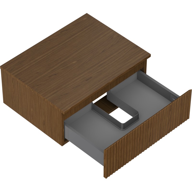 Špecifikácia produktu: Rozmery skrinky: Šírka: 60 cm Výška: 23,5 cm Hĺbka: 46 cm Farba korpusu: Orech Materiál korpusu: Doska + PVC fólia Farba čela: Orech Materiál čela: MDF doska + PVC fólia Štruktúra čela: Drážkovaná Počet zásuviek Plný výsuv pre ľahký prístup k obsahu zásuvky Povrch odolný voči UV žiareniu Rozmery pracovnej dosky: Šírka: 60,6 cm Hĺbka: 46,5 cm Hrúbka: 1,8 cm Farba pracovnej dosky: Orech Materiál pracovnej dosky: MDF doska + PVC fólia Povrch odolný voči UV žiareniu Ideálny ako