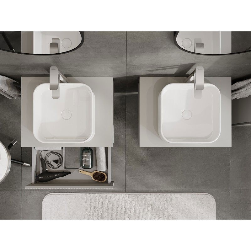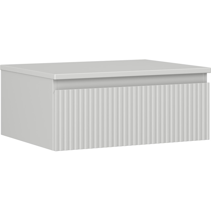 Špecifikácia produktu: Rozmery skrinky: Šírka: 60 cm Výška: 23,5 cm Hĺbka: 46 cm Farba korpusu: Matne šedá Materiál korpusu: Lakovaná doska Farba čela: Matne šedá Materiál čela: Lakovaná MDF doska Štruktúra čela: Drážkovaná Počet zásuviek: 1 výsuv pre ľahký prístup k obsahu zásuvky Povrch odolný voči UV žiareniu Rozmery pracovnej dosky: Šírka: 60,6 cm Hĺbka: 46,5 cm Hrúbka: 1,8 cm Farba pracovnej dosky: Matne šedá Materiál pracovnej dosky: Lakovaná MDF doska Povrch odolný voči UV žiareniu Ideálny ako podstavec