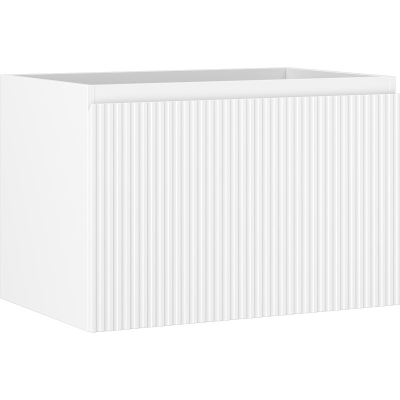 Špecifikácia produktu: Šírka: 70 cm Výška: 47 cm Hĺbka: 46 cm Farba korpusu: Matná biela Materiál korpusu: Lakovaná doska Farba čela: Matná biela Materiál čela: Lakovaná MDF doska Štruktúra čela: Drážkovaná Počet zásuviek: 1 Priestranná zásuvka s funkciou zásuvky Povrch odolný voči UV žiareniu Kombinovateľný s pracovnou doskou alebo umývadlom Otis, Vela Zmontovaný produkt