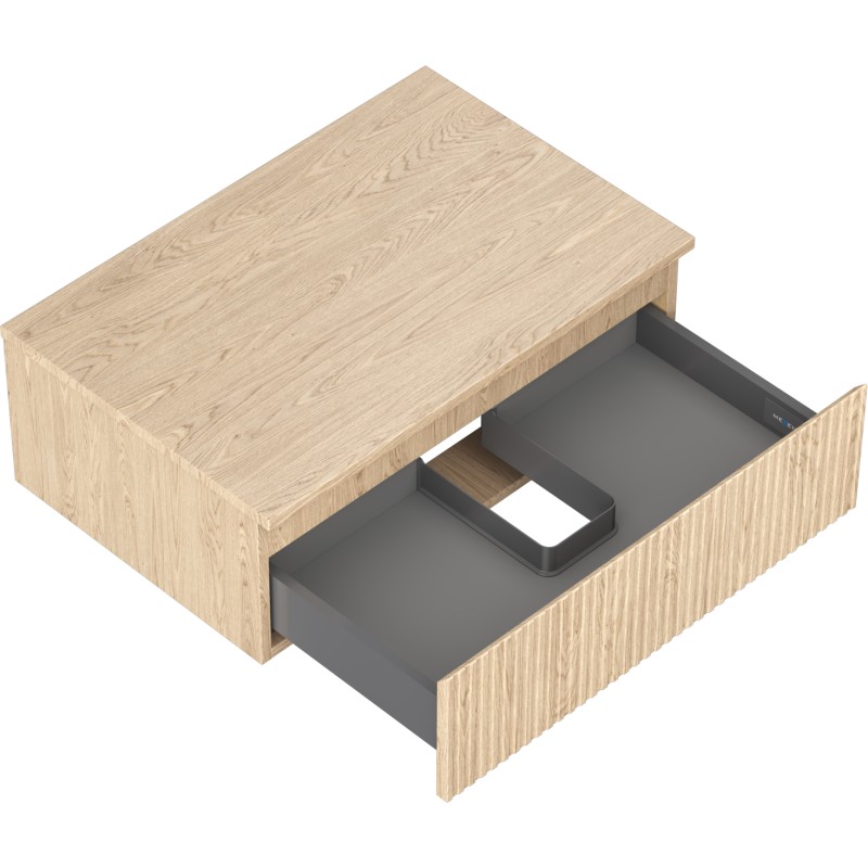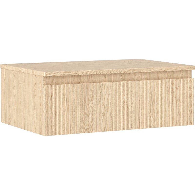 Špecifikácia produktu: Rozmery skrinky: Šírka: 70 cm Výška: 23,5 cm Hĺbka: 46 cm Farba korpusu: Dub Materiál korpusu: Doska + PVC fólia Farba čela: Dub Materiál čela: MDF doska + PVC fólia Štruktúra čela: Drážkovaná Počet zásuviek: 1 Pros ľahký prístup k obsahu zásuvky Povrch odolný voči UV žiareniu Rozmery pracovnej dosky: Šírka: 70,6 cm Hĺbka: 46,5 cm Hrúbka: 1,8 cm Farba pracovnej dosky: Dub Materiál pracovnej dosky: MDF doska + PVC fólia Povrch odolný voči UV žiareniu Ideálny ako podstavec pre umývadlá