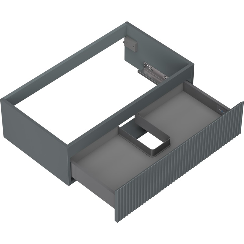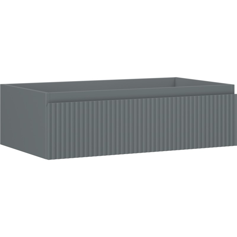 Špecifikácia produktu: Šírka: 80 cm Výška: 23,5 cm Hĺbka: 46 cm Farba korpusu: Matný grafit Materiál korpusu: Lakovaná doska Farba čela: Matný grafit Materiál čela: Lakovaná MDF doska Štruktúra čela: Drážkovaná Počet zásuviek: 1 Priestranná zásuvka k obsahu zásuvky Povrch odolný voči UV žiareniu Kombinovateľný s pracovnou doskou alebo umývadlom Otis, Vela Zmontovaný produkt