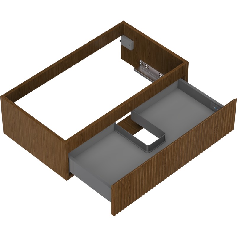 Špecifikácia produktu: Šírka: 80 cm Výška: 23,5 cm Hĺbka: 46 cm Farba korpusu: Orech Materiál korpusu: Doska + PVC fólia Farba čela: Orech Materiál čela: MDF doska + PVC fólia Štruktúra čela: Drážkovaná Počet zásuviek: 1 Priestranná zásuvka k obsahu zásuvky Povrch odolný voči UV žiareniu Kombinovateľný s pracovnou doskou alebo umývadlom Otis, Vela Zostavený produkt