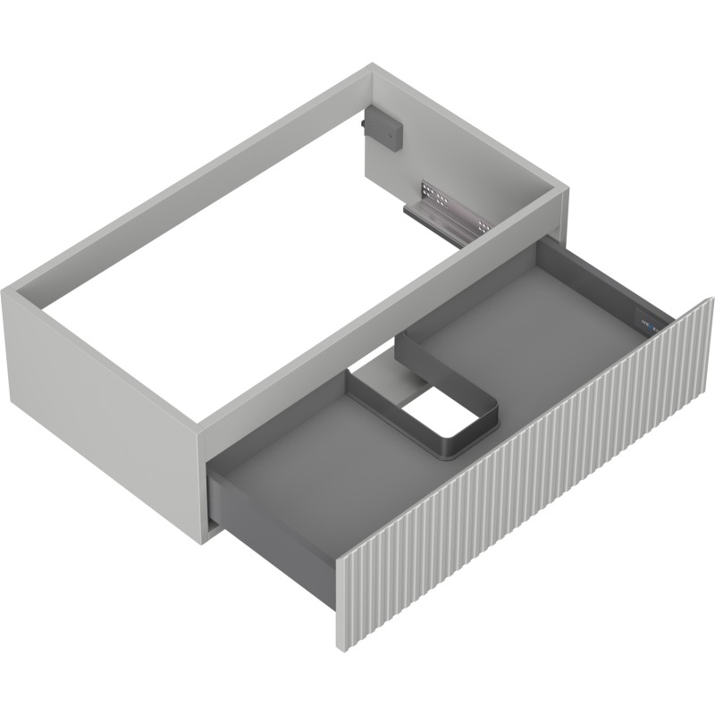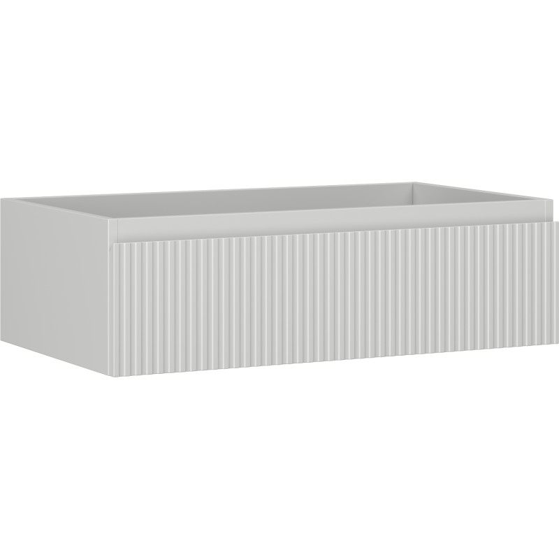 Špecifikácia produktu: Šírka: 80 cm Výška: 23,5 cm Hĺbka: 46 cm Farba korpusu: Matne šedá Materiál korpusu: Lakovaná doska Farba čela: Matne šedá Materiál čela: Lakovaná MDF doska Štruktúra čela: Drážkovaná Počet zásuviek: 1 Priestranná zásuvka s funkciou zásuvky Povrch odolný voči UV žiareniu Kombinovateľný s pracovnou doskou alebo umývadlom Otis, Vela Zmontovaný produkt