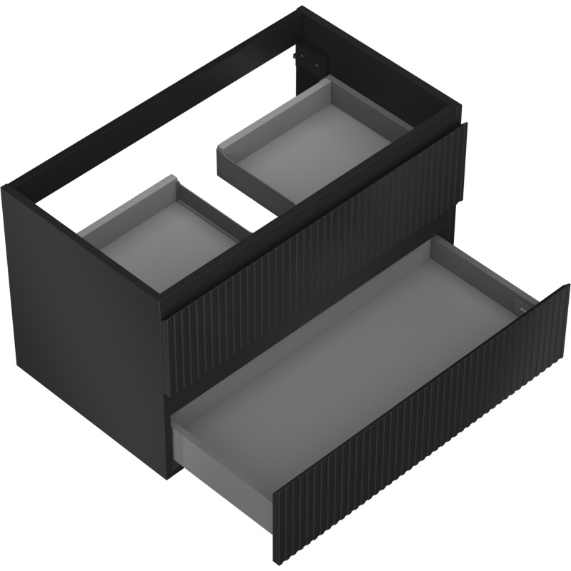 Špecifikácia produktu: Šírka: 80 cm Výška: 47 cm Hĺbka: 46 cm Farba korpusu: Matná čierna Materiál korpusu: Lakovaná doska Farba čela: Matná čierna Materiál čela: Lakovaná MDF doska Konštrukcia čela: Drážkovaná Počet zásuviek: 2 Priestranná zásuvka s funkciou tlmeného Povrch odolný voči UV žiareniu Kombinovateľný s pracovnou doskou alebo umývadlom Otis, Vela Zmontovaný produkt