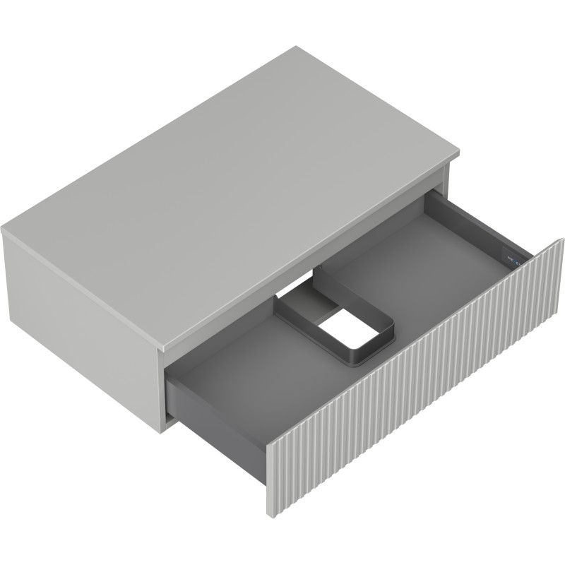 Špecifikácia produktu: Rozmery skrinky: Šírka: 80 cm Výška: 23,5 cm Hĺbka: 46 cm Farba korpusu: Matne šedá Materiál korpusu: Lakovaná doska Farba čela: Matne šedá Materiál čela: Lakovaná MDF doska Štruktúra čela: Drážkovaná Počet zásuviek: 1 výsuv pre ľahký prístup k obsahu zásuvky Povrch odolný voči UV žiareniu Rozmery pracovnej dosky: Šírka: 80,6 cm Hĺbka: 46,5 cm Hrúbka: 1,8 cm Farba pracovnej dosky: Matne šedá Materiál pracovnej dosky: Lakovaná MDF doska Povrch odolný voči UV žiareniu Ideálny ako podstavec