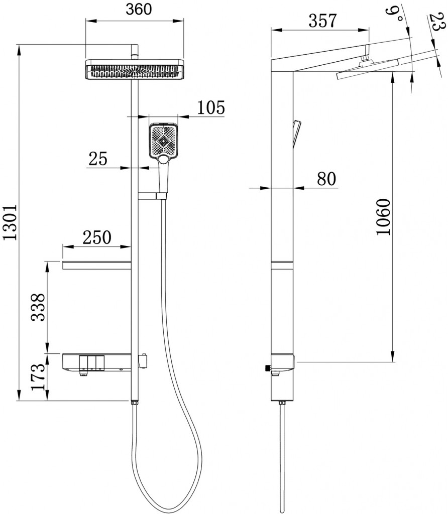 Rozmer dažďovej sprchy: 230 x 360 mm